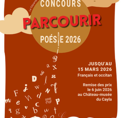 Concours poésie "Parcourir" Lieu 321 impasse du musée 81140 Andillac Horaire 00H00 Du 09 Jan. au 15 Mar.