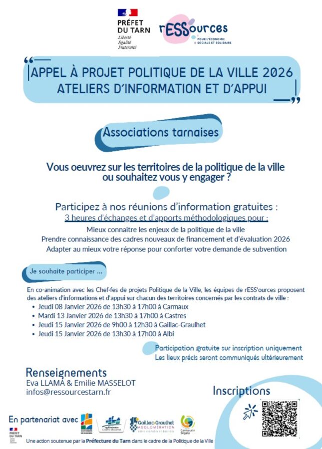 La Communauté d’agglomération Gaillac-Graulhet lance son appel à projets Politique de la Ville 2026, ouvert du 15 décembre 2025 au 15 février 2026. Vous êtes une association, un acteur local, un collectif ou un porteur de projet engagé en faveur des habitants des quartiers prioritaires de la ville (QPV) ? C’est le moment de proposer une action utile, innovante et au plus près des besoins du territoire. Cet appel à projets s’inscrit dans la mise en œuvre du Contrat de ville 2024-2030 et vise à soutenir des initiatives contribuant concrètement à l’amélioration du cadre de vie, de la cohésion sociale et de l’égalité des chances dans les quartiers prioritaires de la politique de la ville (QPV).