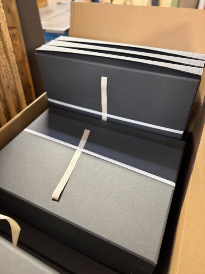 La spécialité de l’entreprise ? Le carton d’archivage à pH neutre. Un carton au gris feutré, pensé comme un mille-feuille, conçu pour conserver archives, documents précieux ou livres anciens. « Il ne retient pas l’humidité, empêche les champignons de s’installer et est traité pour ralentir la propagation du feu en cas d’incendie », explique Marie.