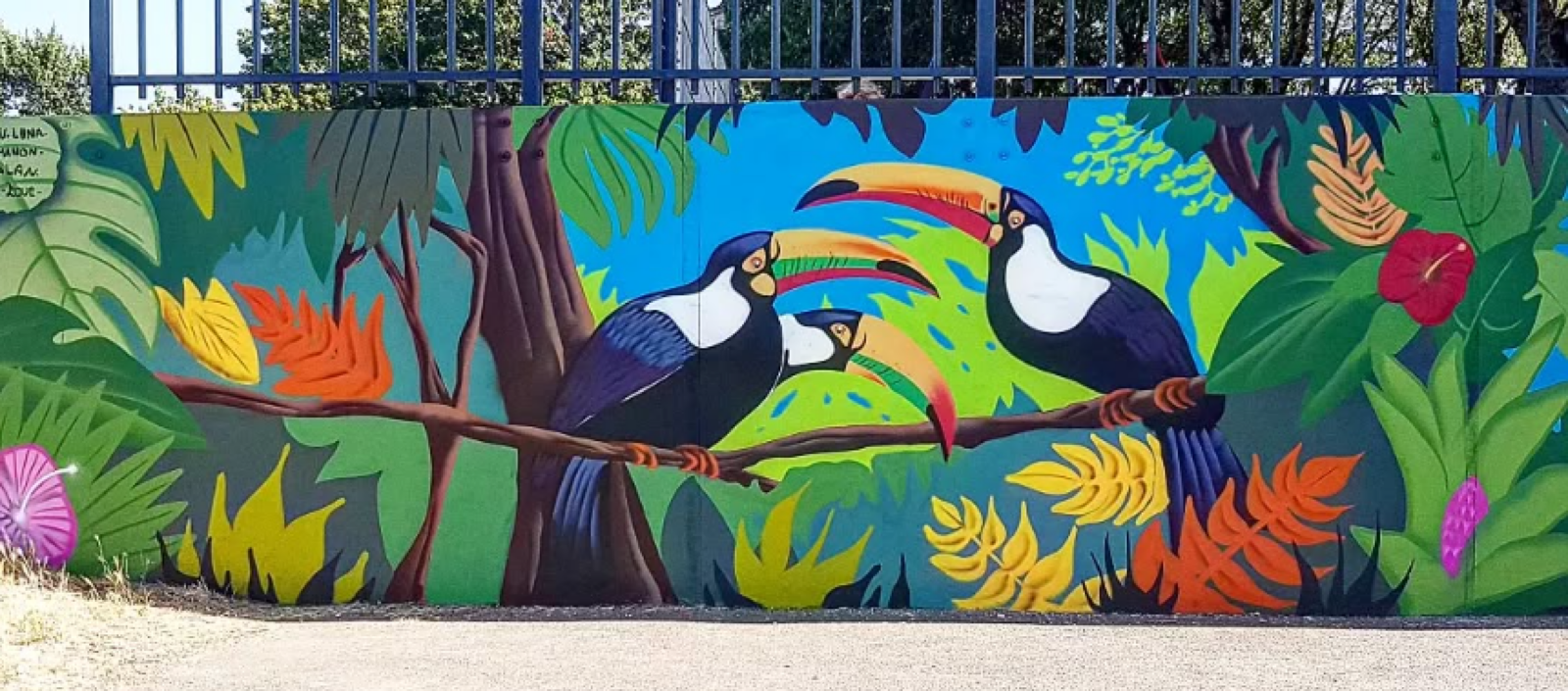 Aujourd’hui installé près de Gaillac, Mika a trouvé son équilibre : « Toulouse c’était une étape, j’avais besoin de revenir à la campagne ». Il choisit de distinguer son graffiti “pur”, plus libre et expérimental où on le connait sous le nom de Sotiz, de son activité professionnelle : il collabore avec des entreprises, des institutions et des particuliers pour créer des fresques uniques. Chambres d’enfants, murs de piscine, cages d’escalier ou façades publiques deviennent ses toiles géantes. À Gaillac, on peut admirer certaines de ses œuvres sur les murs de la médiathèque. Sa plus grande réalisation ? Une fresque monumentale de 400 m², longue de 50 m et haute de 9 m !