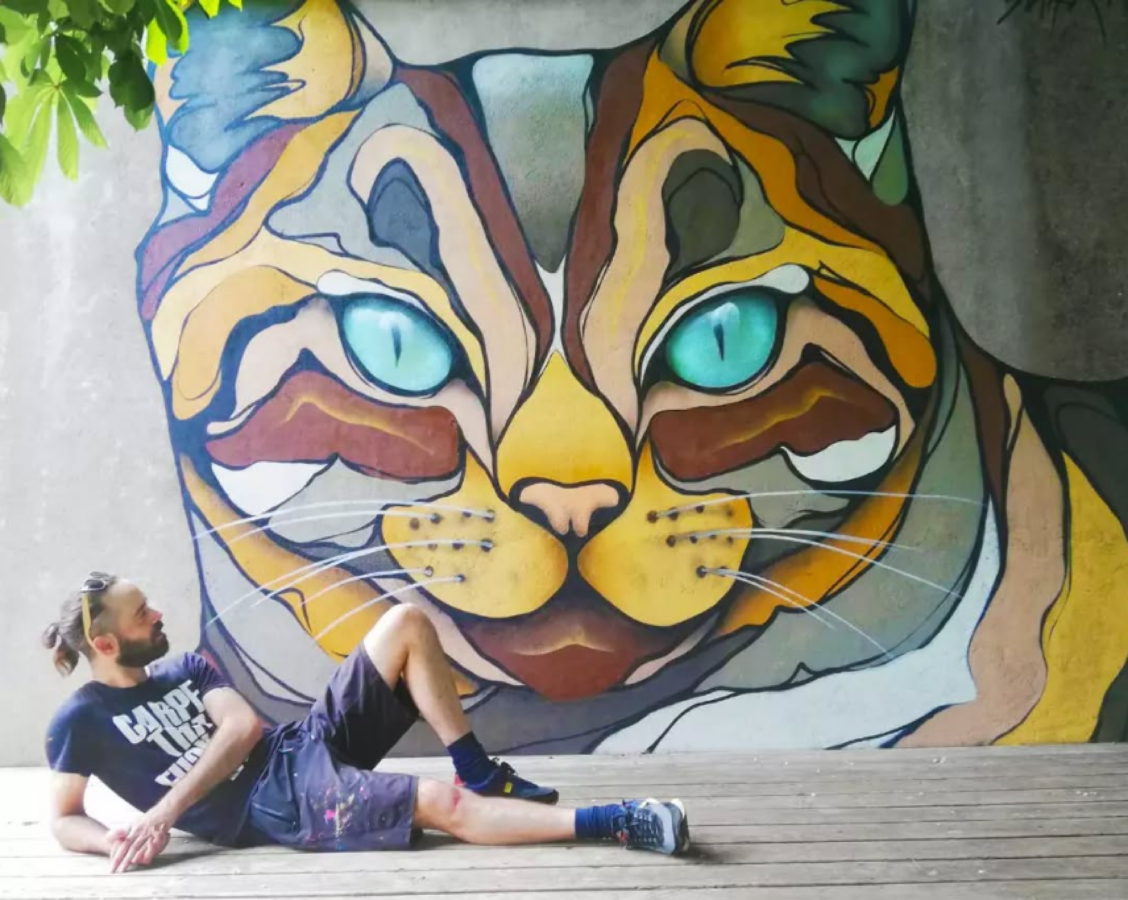 Véritable couteau suisse, Mika a multiplié les expériences professionnelles : cuisinier, facteur, guide touristique… Autant de métiers qui lui ont offert la liberté de continuer d’explorer ses passions. Graffeur depuis 25 ans, il a “fait ses armes” à Toulouse, au cœur d’une communauté créative qui l’encourage à persévérer. En 2020, il franchit le pas et décide d’en faire son métier : « J’ai vu des amis réussir à en vivre, je me suis dit que c’était possible », nous raconte Mika. Une aubaine pour cet homme de 40 ans, jeune papa, qui souhaitait allier passion et stabilité.