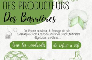 Marché des producteurs des Barrières Lieu Les Barrières 81310 Lisle-sur-Tarn Horaire 17H30 à 19H00 Toute l’année, prenez le temps de flâner dans ce petit marché de producteurs, véritable concentré de saveurs locales. Vous y trouverez une sélection de producteurs du coin : légumes de saison, fromages et plats de traiteur. En savoir plus Du 01 Jan. au 31 Déc.