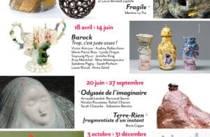 Expostion "Forme et force" et "Fragile" Lieu 7 place Lucie Bouniol 81500 Giroussens Horaire 00H00 Pascal Geoffroy et Louis Zajdela, explorent chacun la céramique. Dans leurs œuvres, "force et forme" se répondent. " Fragile " explore introspection et résilience à travers des sculptures évoquant le cycle vie-mort-vie. En savoir plus Du 14 Fév. au 12 Avr.