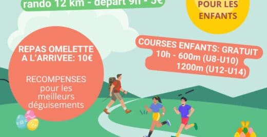 Un repas est également proposé, ainsi qu’une chasse aux œufs dédiée aux enfants, pour prolonger la journée dans une ambiance familiale. Le retrait des dossards / puces se fera à partir de 8h00 et jusqu’à 30 minutes avant chaque départ.