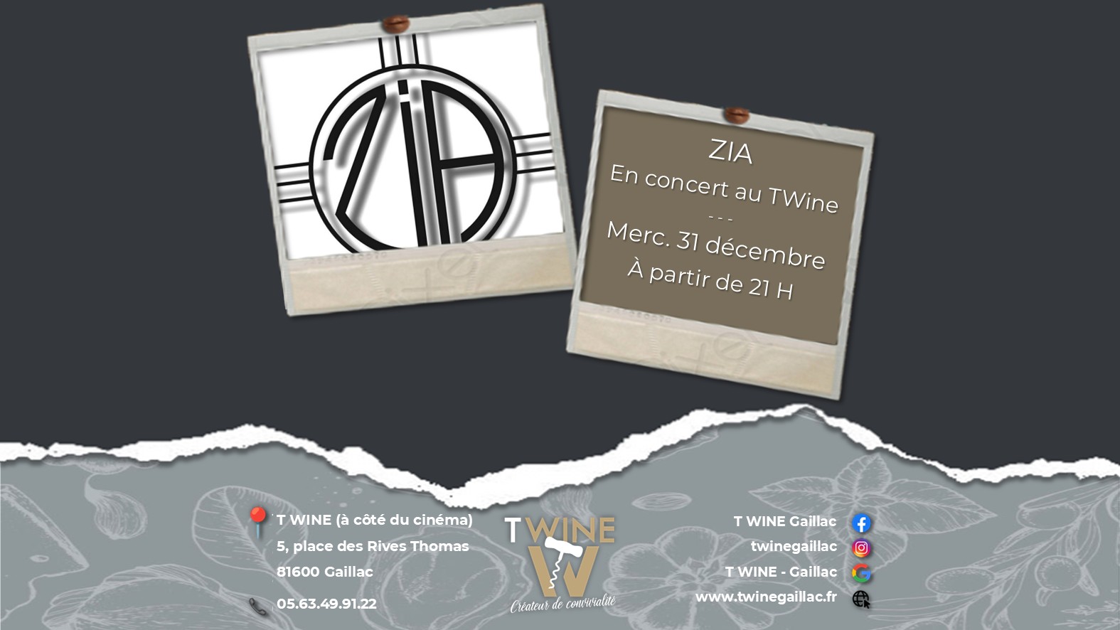 Soirée Réveillon avec menu unique et concert avec le groupe ZIA ! Réservation obligatoire au 05.63.49.91.22.