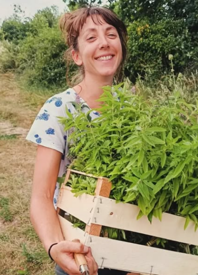 Depuis janvier 2024 elle sème, arrose, plante, cueille, sèche, transforme, enflaconne, étiquette et vend les plantes aromatiques et médicinales qu’elle cultive sur une parcelle de 600m² à l’Essor Maraîcher. L’autre partie de ses récoltes est cueillie sauvagement sur des sites préservés entre Tarn et Ariège.